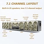 THREE SOUND FIELD MODE SWITCHING: built-in three sound field modes, 2.1/5.1/7.1 sound field mode, atypical movies will also be easily converted to 7.1 channels, professional DSP digital sound processor 7100, to create wealthy levels of sound.